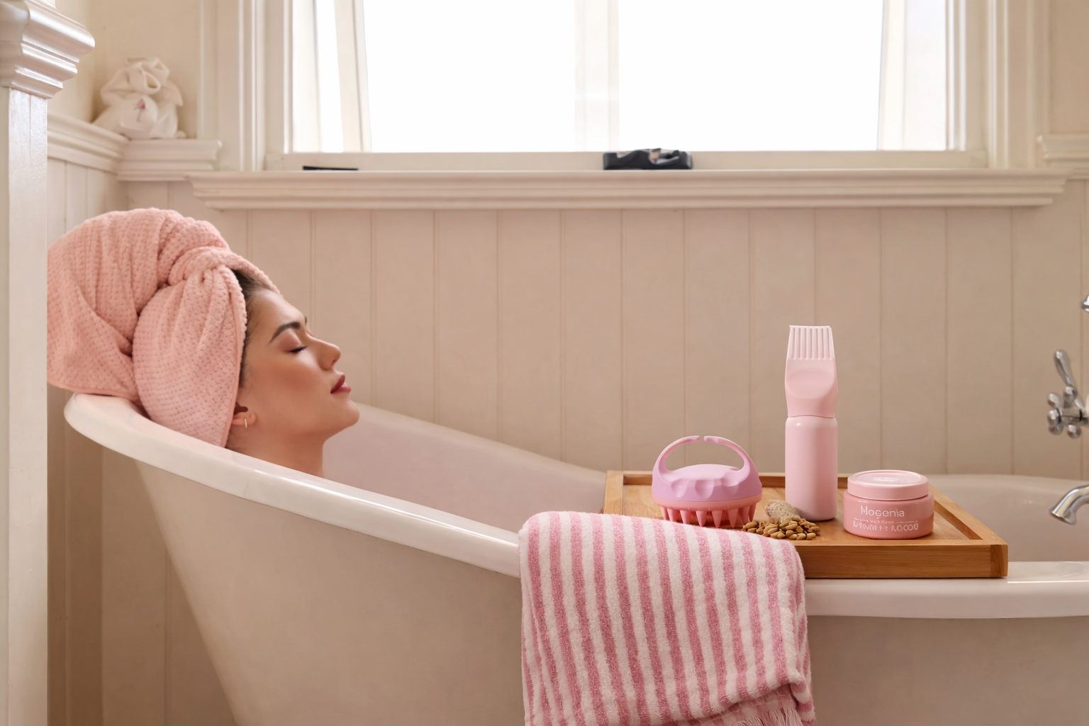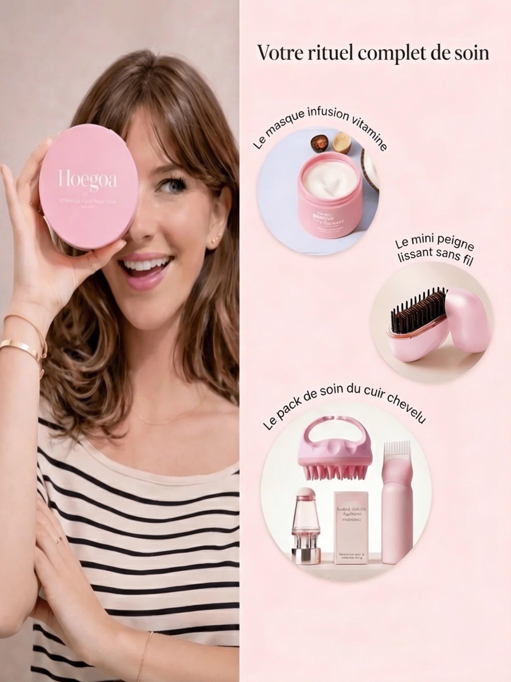 Utilisez la brosse en silicone offerte dans le pack cadeau pour masser votre cuir chevelu à chaque shampoing